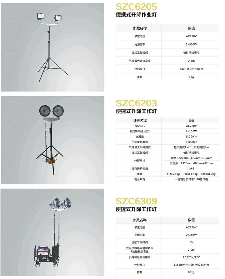 SZC6205 SZC6203 SZC6309便捷式升降作业灯