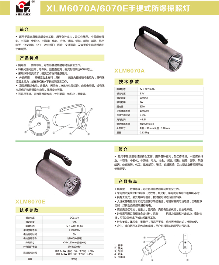XLM6070E手提式防爆探照灯