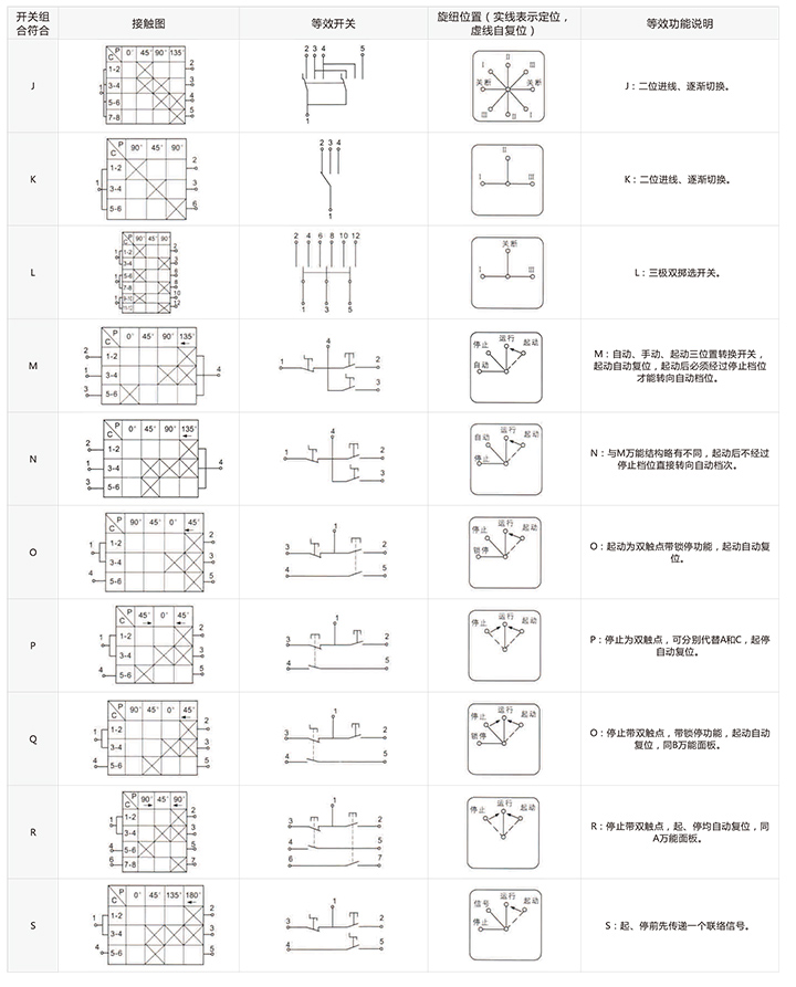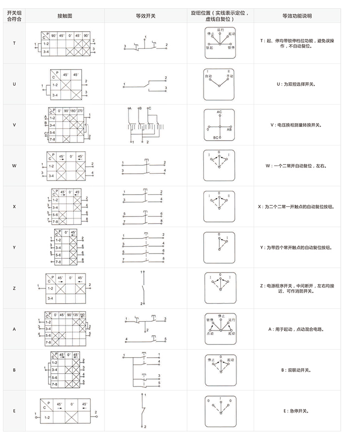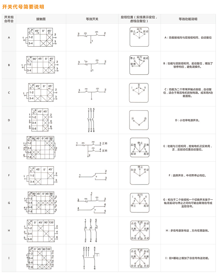 开关代号简要说明